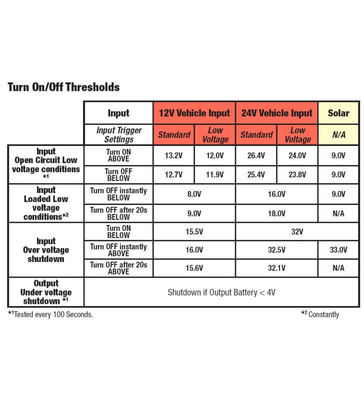 Das Gerät ist für 12- oder 24-Volt-Fahrzeugsysteme geeignet und funktioniert auch mit Standard- oder variablen/intelligenten Lichtmaschinen.