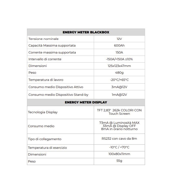 ENERGYMETER è un misuratore di corrente e tensione, composto da due moduli installabili su qualsiasi veicolo.