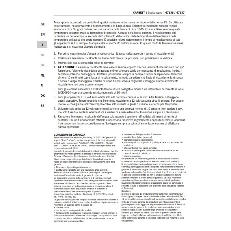 Das Heizelement erwärmt das Brauchwasser bei einem Tankinhalt von ca. 10-15 Litern auf ca. 38 Grad Celsius und hält diese Temperatur dank Regelthermostat stets konstant.