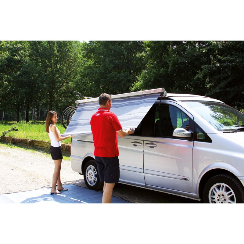 Die Fiamma F35 Pro ist die praktische, manuell betriebene Markise mit in der Rolle integrierten Kugeln, die dank verschiedener Arten von Halterungen, die an den Wänden oder an den Dachträgern oder am Kanal befestigt werden, an jedem Minivan installiert werden kann.