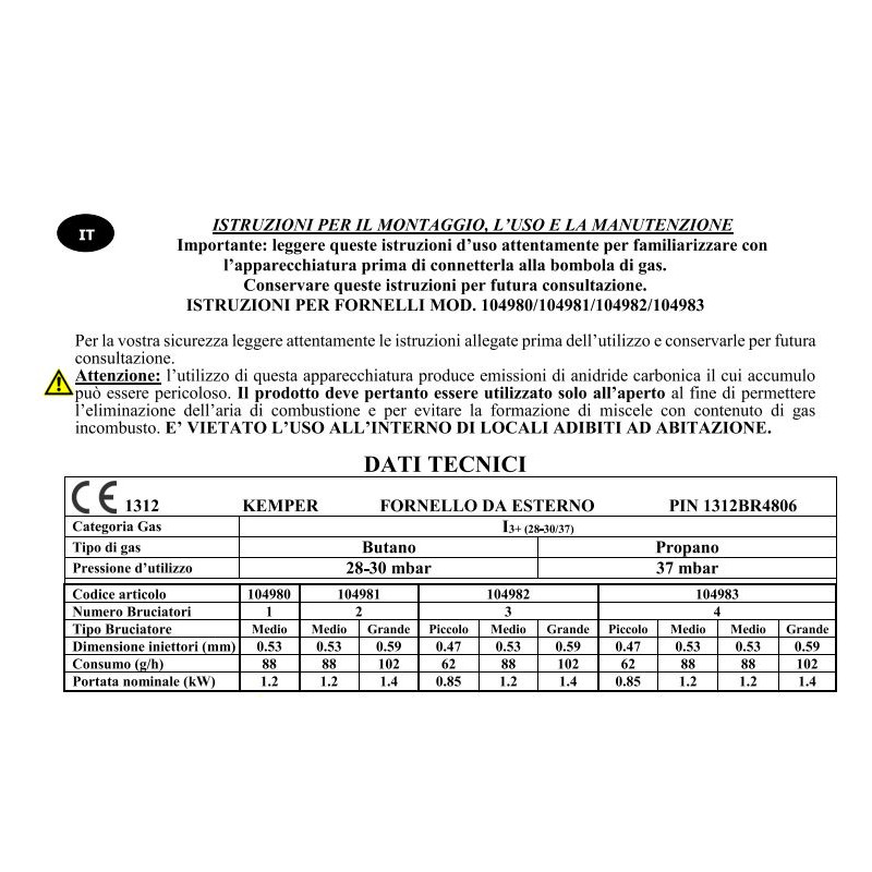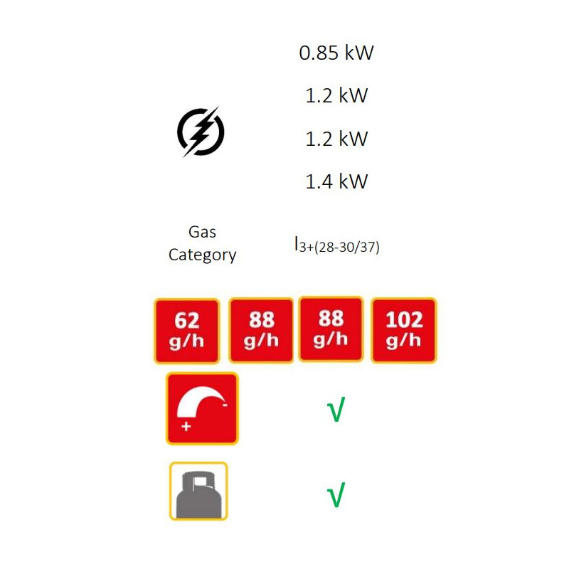 Kocher mit 4 Edelstahlbrennern, hoher Leistung, soliden, rutschfesten Füßen, Deckel und abnehmbarem Grill.