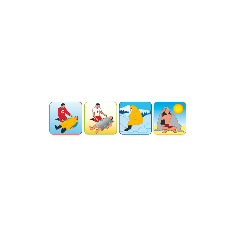 Mit der goldenen Seite in Kontakt mit der Der Körper reflektiert die Sonnenstrahlen und lässt den Körper kühl bleiben (Hitzeschutz).