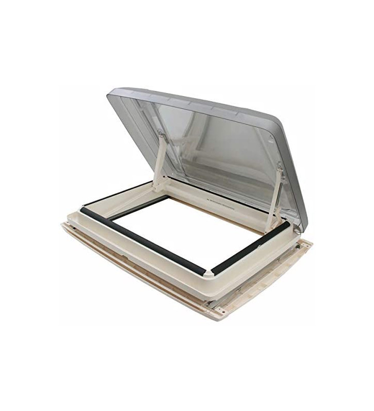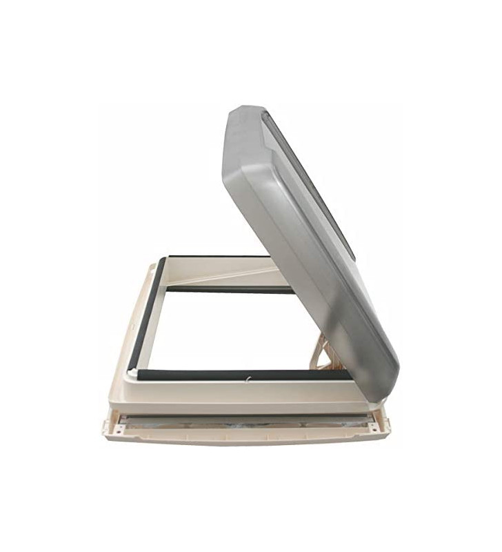 Oblò per caravan, camper e van con cupola fumé per una miglior protezione dai raggi solari UV diretti, design moderno e facile apertura della cupola con una sola mano, grazie allo sblocco e blocco automatico.