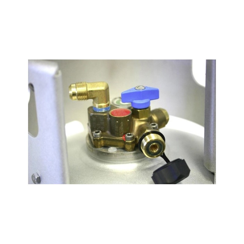 Die Alugas TravelMate Tankflasche wird vormontiert mit einem sogenannten Multiventil geliefert. Neben allen notwendigen Sicherheitsfeatures bietet das Ventil auch den sogenannten 80 %-Füllstopp, der das Tanken bei jedem Füllstand möglich macht. Darüber hinaus gibt die am Ventil angeschlossene Füllstandsanzeige Auskunft über den aktuellen Füllstand der Flasche.