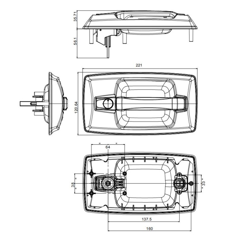 Completo con cerradero, apto para montar en puertas con separador de 28/34 m.