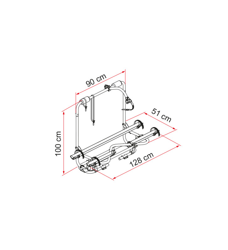 La parte superior es basculante para permitir la apertura del cofre de la caravana incluso con las bicicletas montadas. Tamaño pequeño debido a los timones cortos.