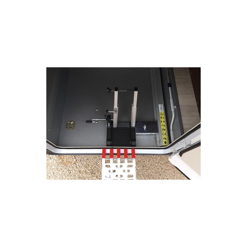 El portamotos eléctrico Pollicino fue creado para satisfacer las necesidades de los campistas que desean transportar sus scooters y motocicletas sin tener que preocuparse por cargarlas y descargarlas del garaje. Gracias a su funcionamiento eléctrico, el Pollicino puede transportar fácilmente bicicletas, scooters y motocicletas de hasta 150 kg.