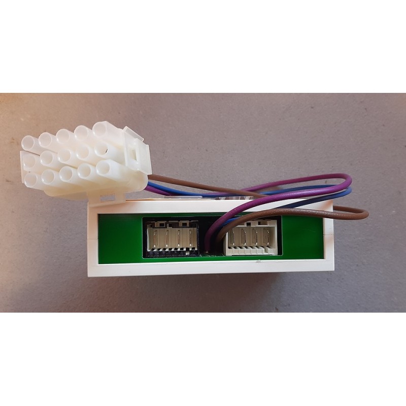 Boîtier relais temporisé qui gère les signaux du camping-car pour l'activation de certains services publics.
