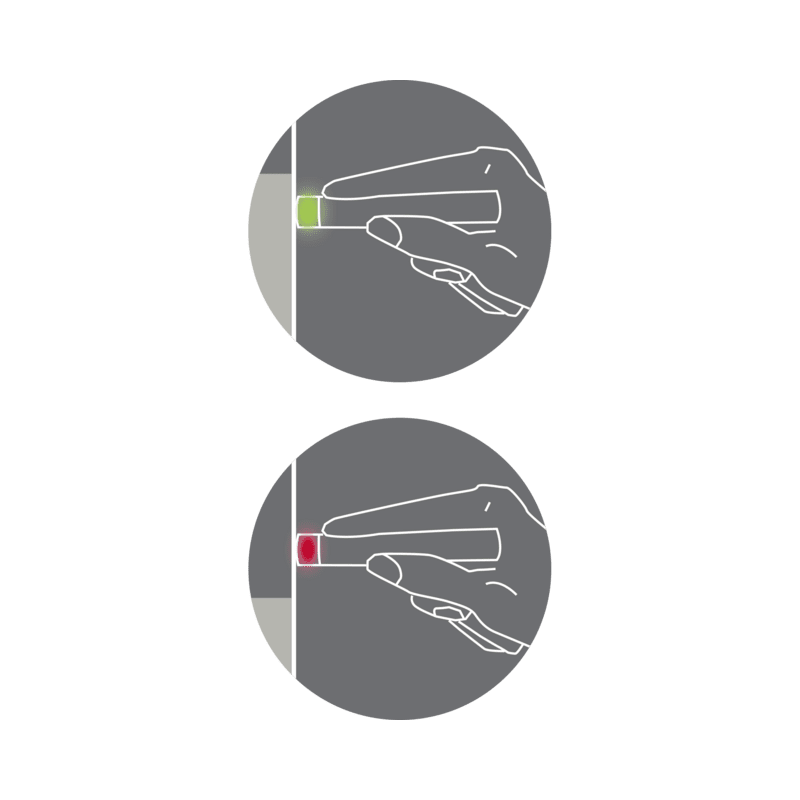 S'il y a du gaz dans la bouteille au point de mesure, le voyant de contrôle du gaz devient vert.