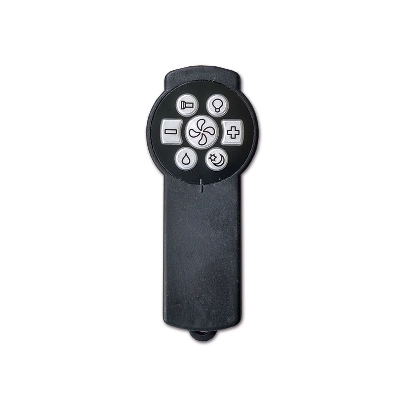 Il est équipé d'une télécommande IR qui facilite les opérations de réglage de la machine, notamment son allumage/extinction, le réglage de la vitesse du ventilateur et la fonction minuterie.