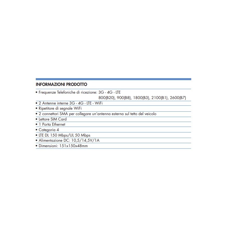 Cette solution vous permet de capturer avec votre routeur WIFI VAN 400 (équipé d’une carte SIM adéquate non fournie) les signaux mobiles disponibles dans la zone où vous avez garé et de transformer votre véhicule en un petit centre WIFI personnel capable d’alimenter jusqu’à 4 appareils simultanément.