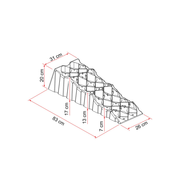La nuova struttura reingegnerizzata è concepita per soddisfare le esigenze di tenuta al carico e l'adattabilità del prodotto sui terreni sconnessi.