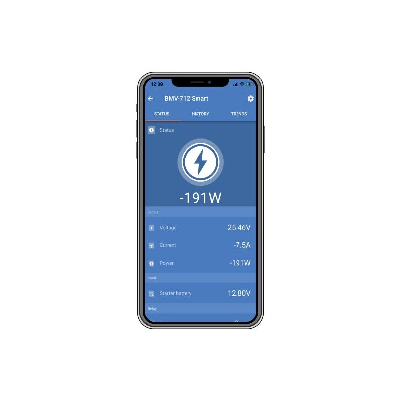 SmartShunt è un monitor della batteria all-in-one che utilizza il telefono come display. SmartShunt si collega tramite Bluetooth all'app VictronConnect sul tuo telefono (o tablet) e puoi leggere facilmente tutti i parametri della batteria monitorati, come il livello di carica, il tempo di funzionamento rimanente, le informazioni cronologiche e molto altro.