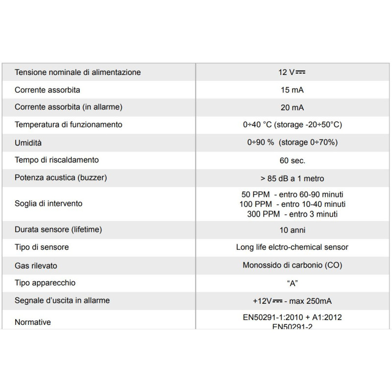 Ogni rivelatore viene testato e calibrato con gas di riferimento; la durata di vita del sensore è di circa 10 anni. Versione da incasso1; completo di cornice “BMAC2”
