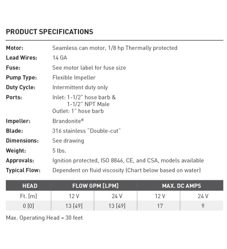 L'esclusiva struttura a doppia pala e alloggiamento di SHURFLO garantisce un pompaggio senza problemi, fornendo prestazioni superiori negli ambienti marini delle megere. Ampere (massimo):17