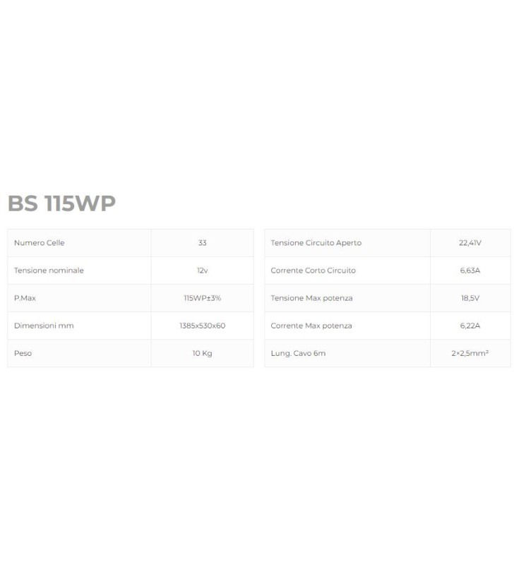 Pannello solare mono 115W BLACK SOLAR NDS staffe integrate cablato