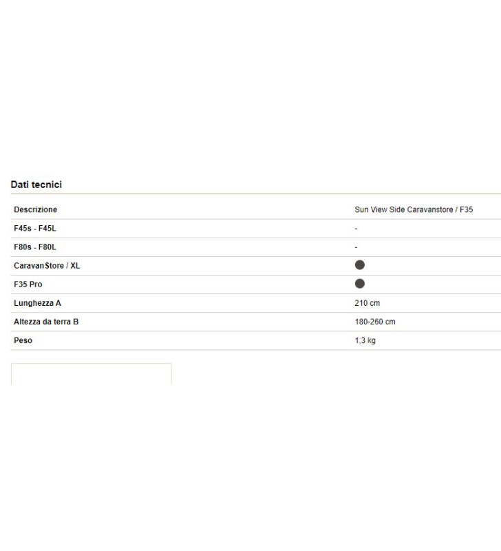 Elevata compatibilità Possono essere montate su entrambi i lati del tendalino e si adattano a tutti i tendalini Fiamma (F45, F70, F80, F65, CaravanStore e F35 Pro) e ai tendalini di altre marche (grazie al Kit Side optional).