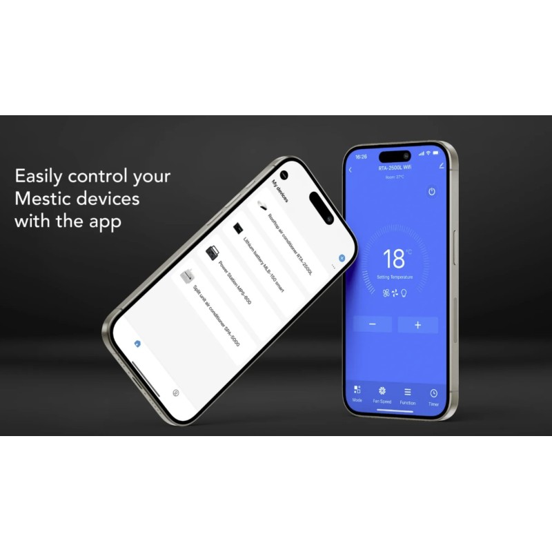 Volete mantenere il vostro veicolo fresco durante il sonno senza che il flusso d'aria fredda sia diretto verso di voi? È possibile! Il flusso d'aria del condizionatore da tetto Mestic RTA-1700L può essere regolato separatamente a destra e a sinistra. È anche possibile scegliere di utilizzare le modalità di ventilazione solo di notte. Grazie alla pratica funzione timer, sarete voi a decidere per quanto tempo lasciare acceso il condizionatore. Di solito dormite poco? Il condizionatore d'aria, già molto silenzioso, diventa ancora più silenzioso in modalità sleep. E come se non bastasse, il condizionatore per caravan è dotato anche di una suggestiva illuminazione a LED. Tutto questo è facilmente impostabile tramite il display touchscreen dell'unità interna, il telecomando in dotazione o il vostro smartphone in combinazione con l'app Mestic. Disponibile in versione bianca o nera.